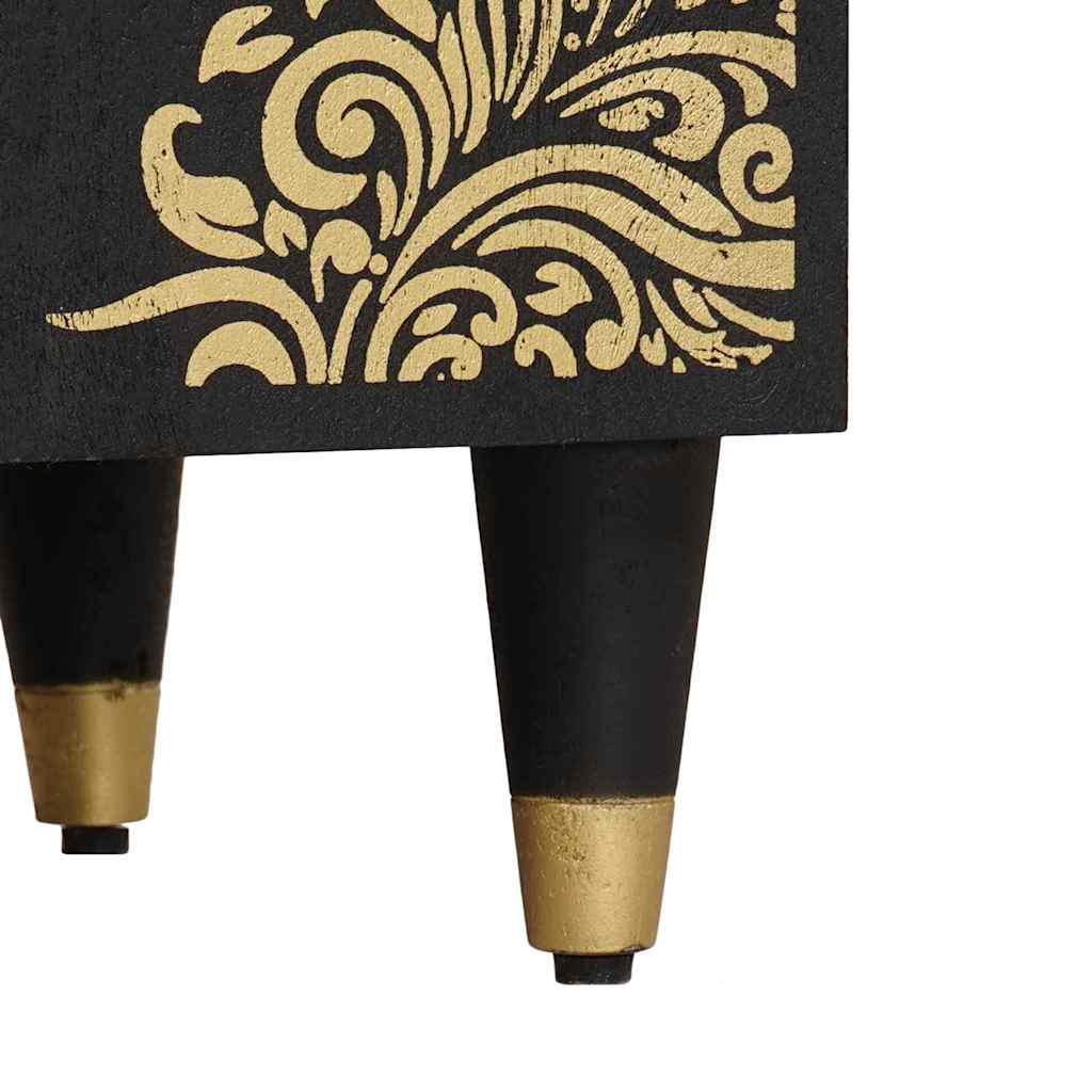 • Σταθερά Συστατικά: Εξοπλισμένο με διακριτικούς χάλκινους λαβές και πόδια, το ντουλάπι προσφέρει σταθερότητα και ευκολία. Ο χάλκινος συνδυασμός προσθέτει μία δόση πολυτέλειας και λειτουργικότητας. Τα κυλινδρικά πόδια δίνουν στήριξη, ώστε να μένει σταθερό σε διάφορες συνθήκες.