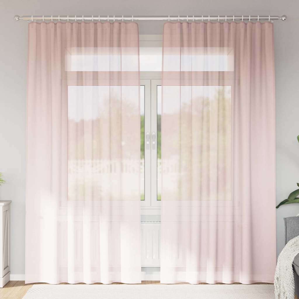 vidaXL Voile κουρτίνες με τσέπες ράβδου 2 τεμάχια Ανοιχτό Ροζ